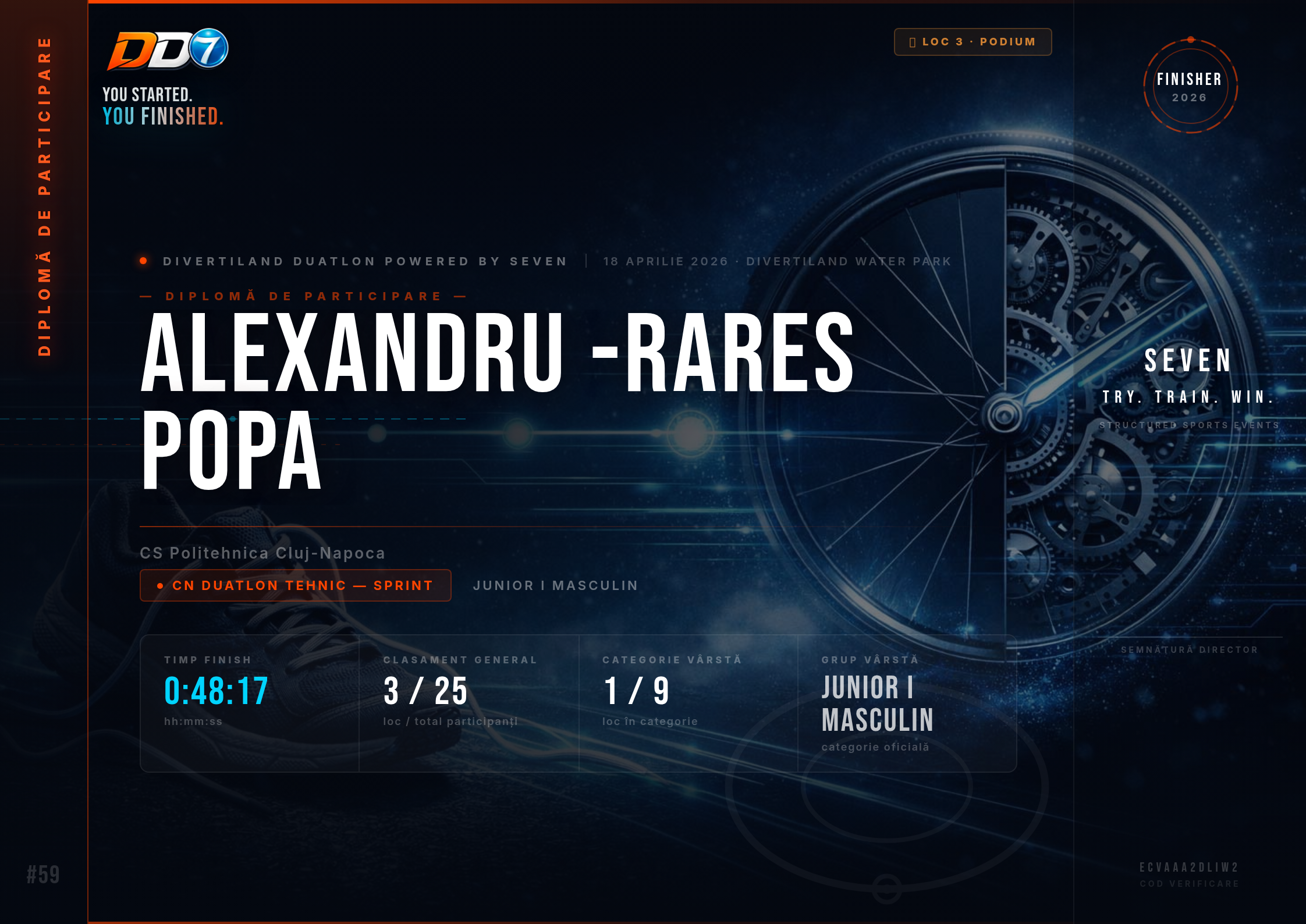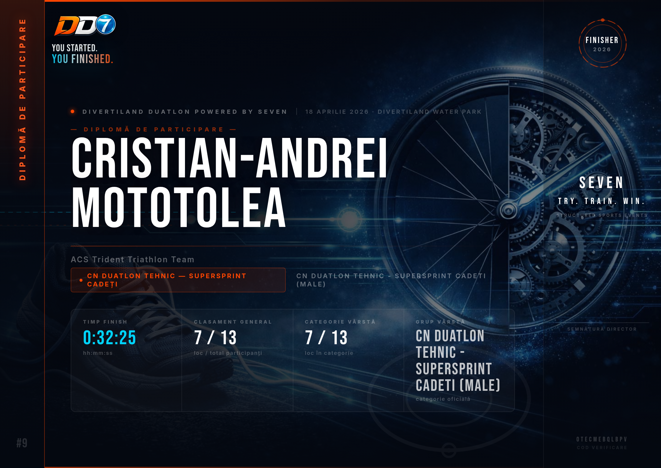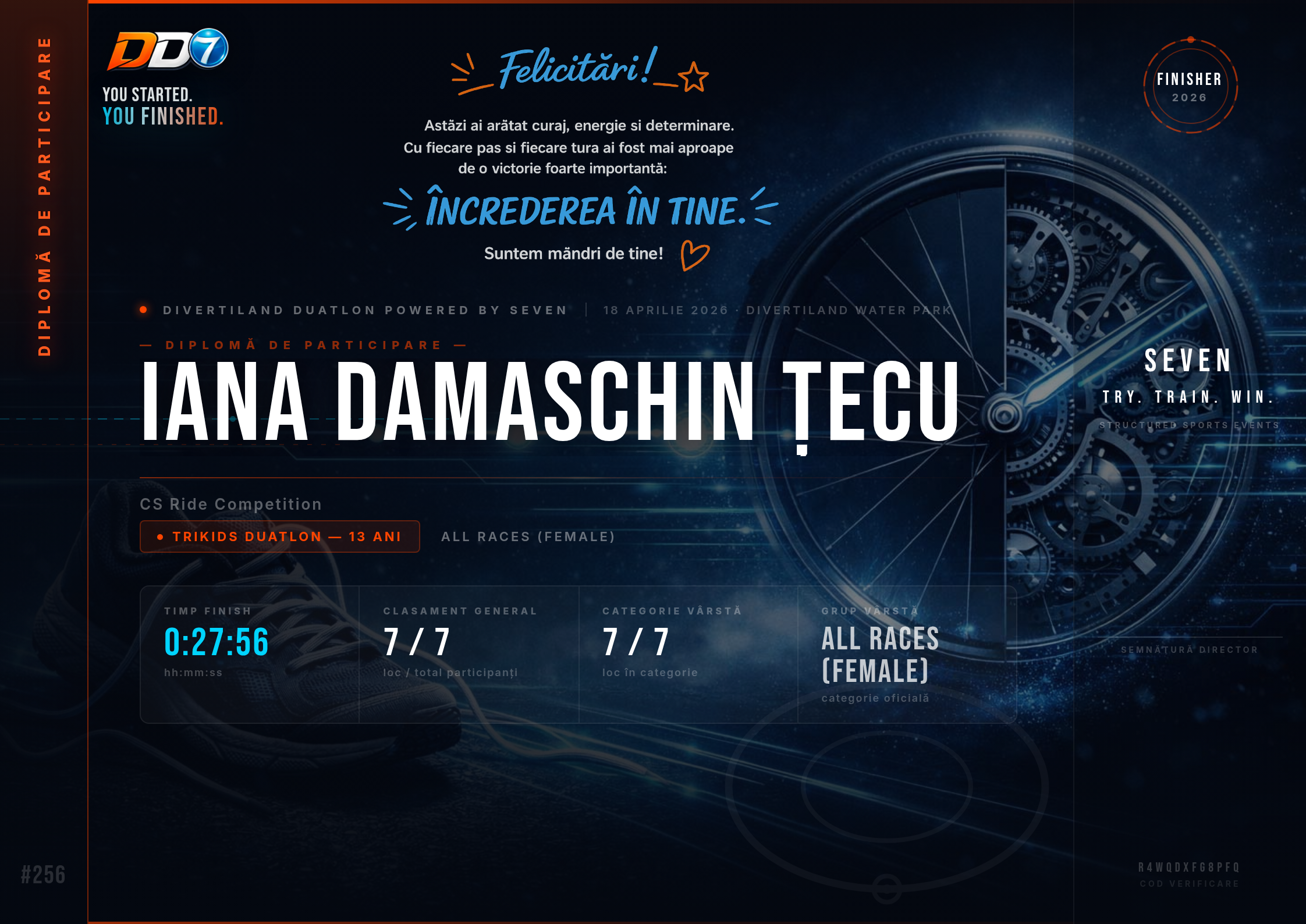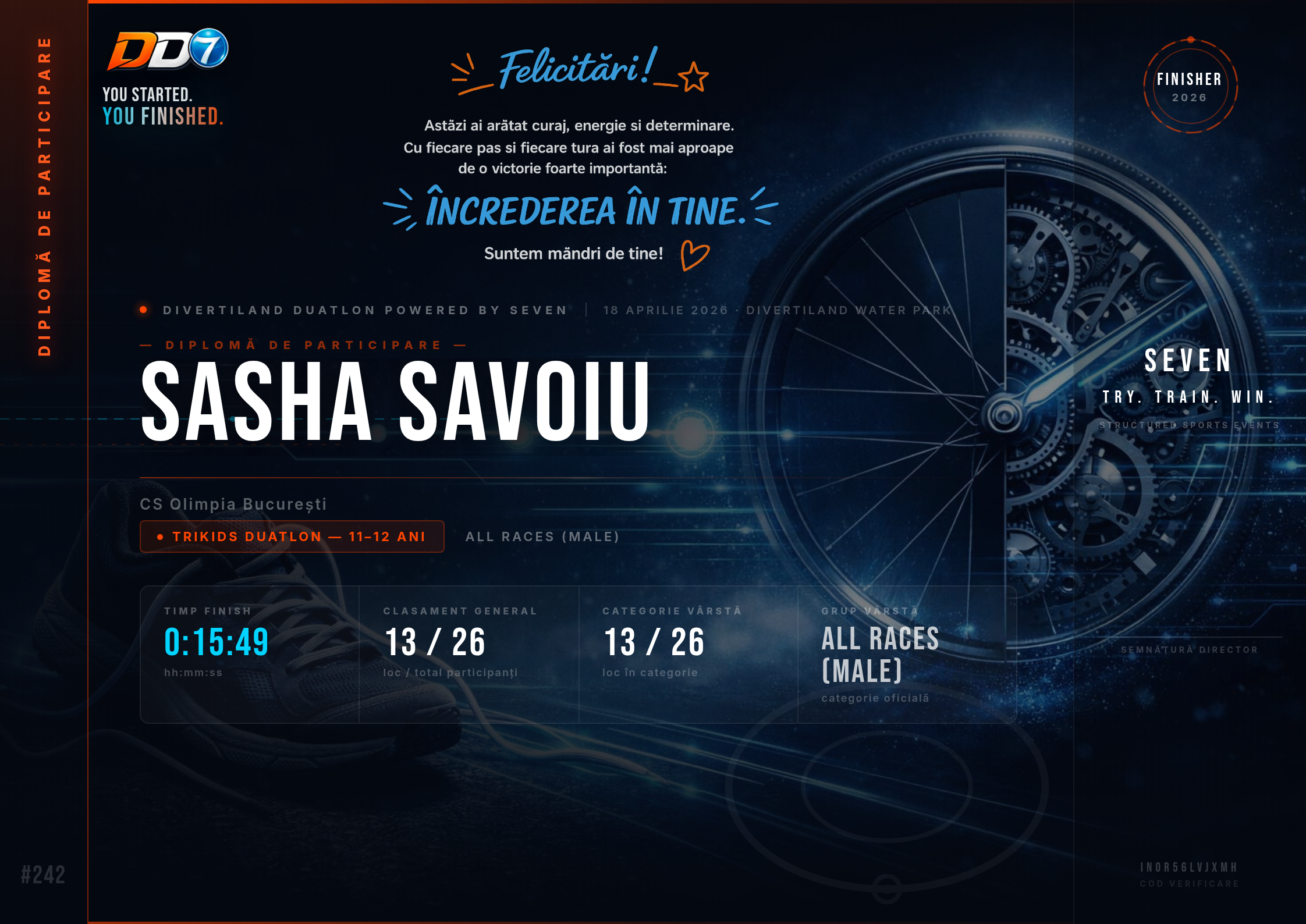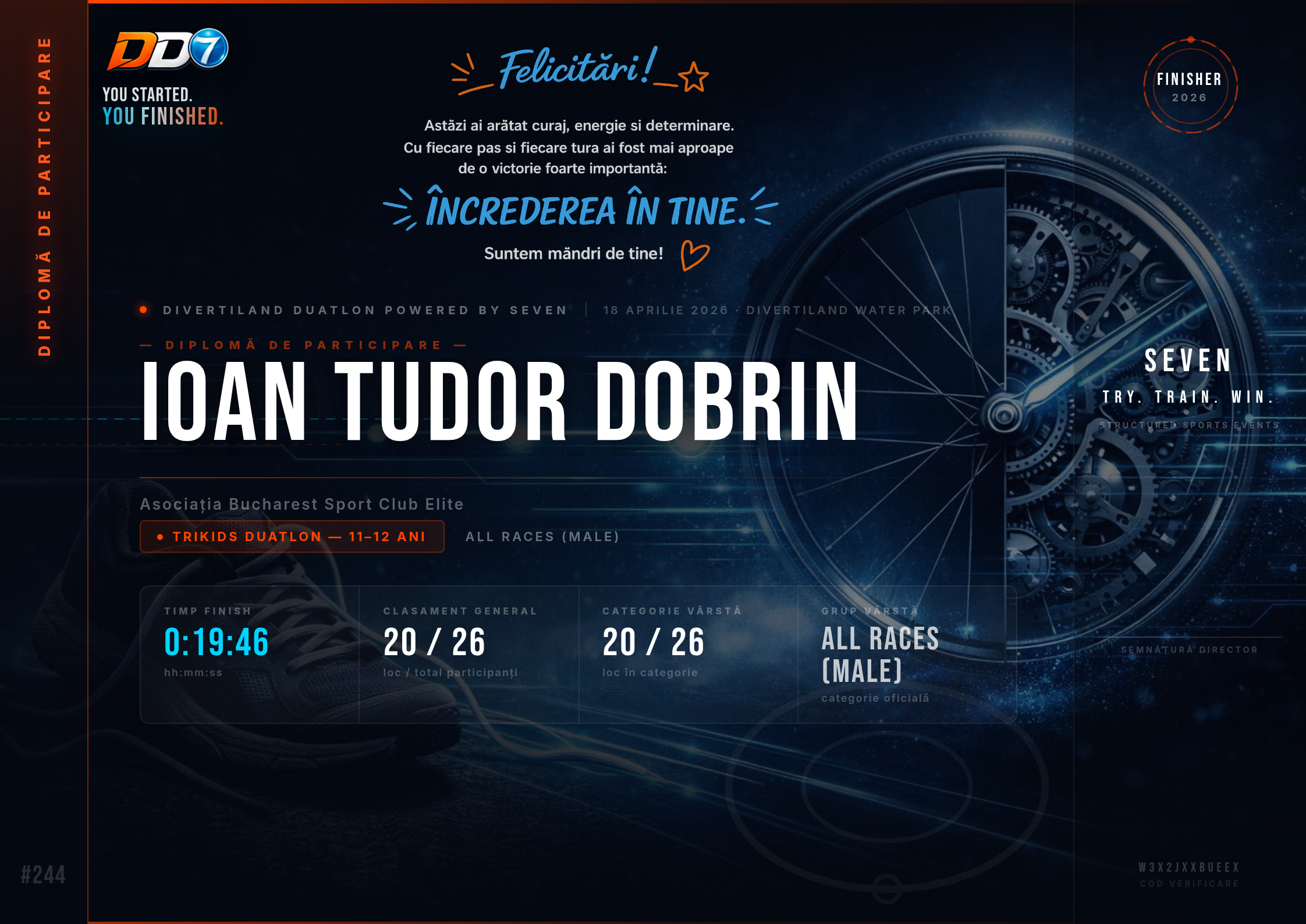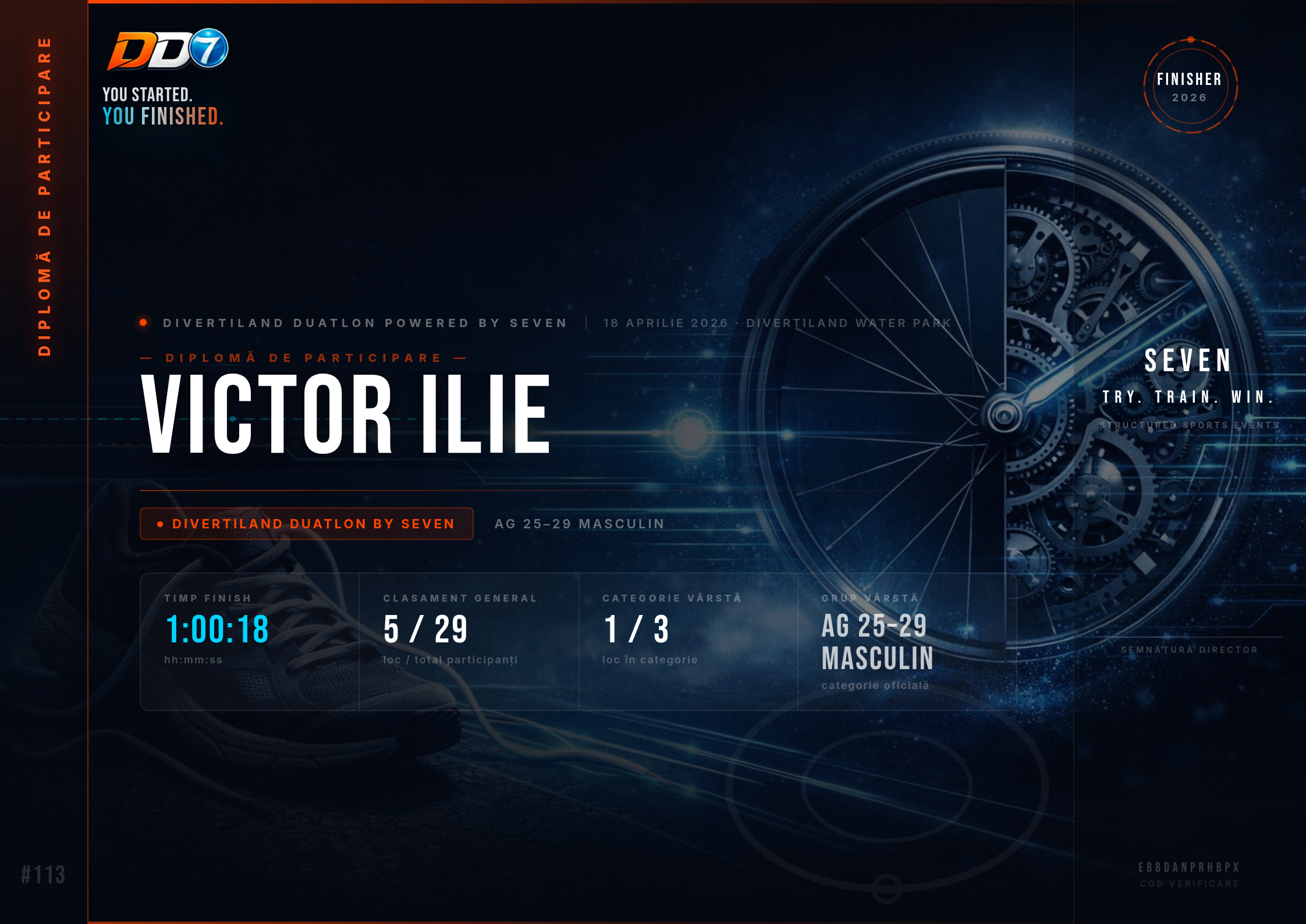| 14 | Victor AdriaN Diaconescu | TRIKids 6-8 Ani | M | 162 | 0:01:07 | 0:00:59 | 0:05:36 | 0:01:38 | 0:09:19 | 📜 |