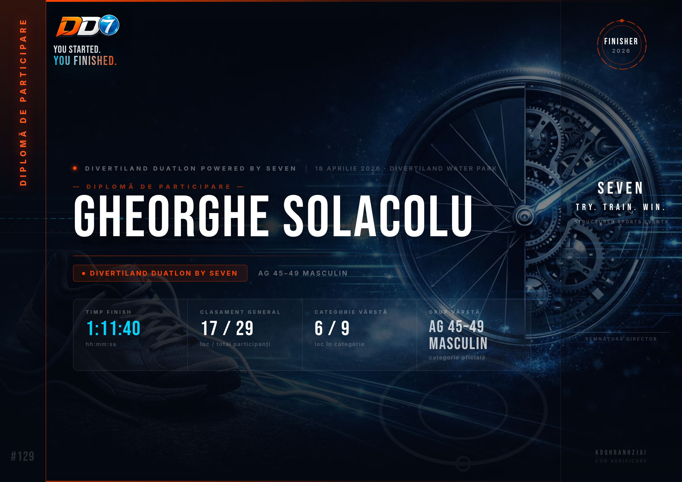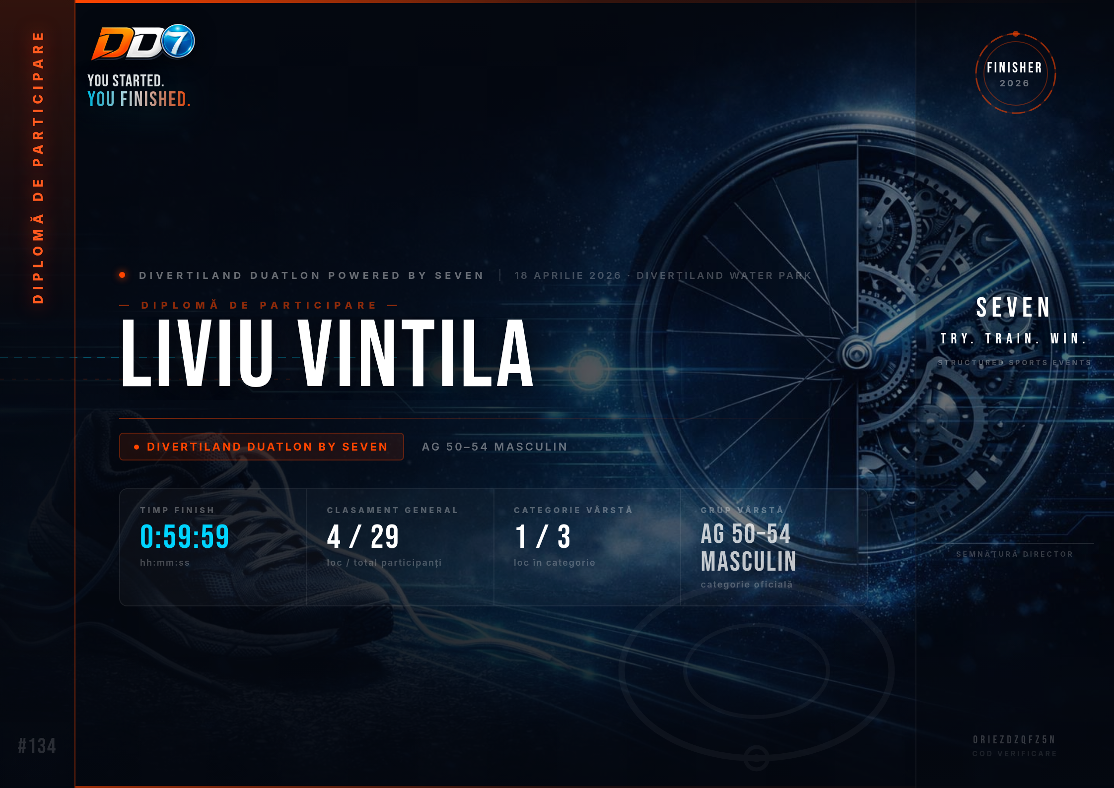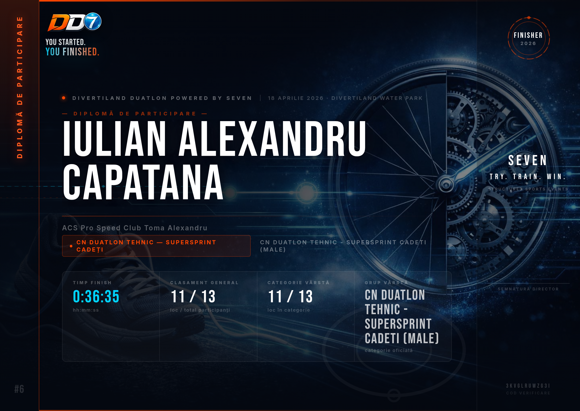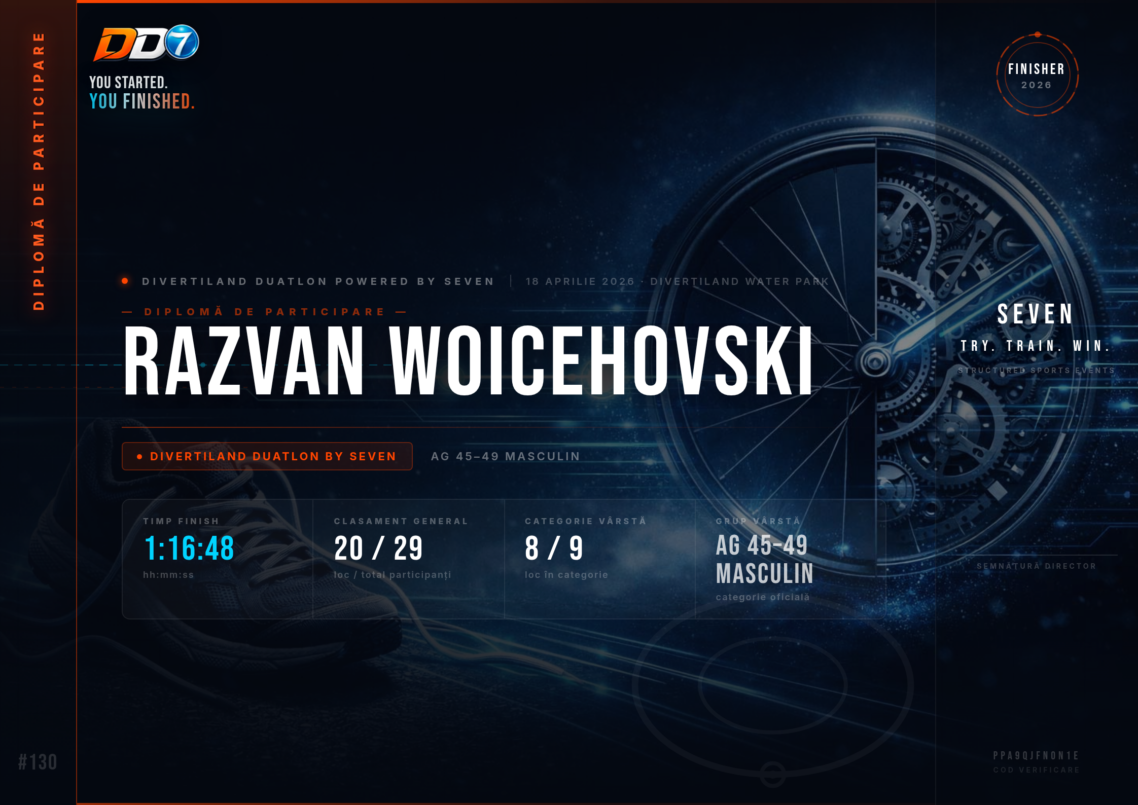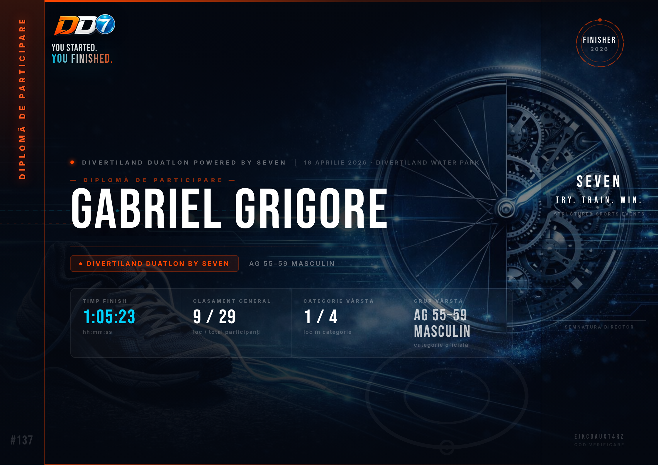 | 14 | Victor AdriaN Diaconescu | TRIKids 6-8 Ani | M | 162 | 0:01:07 | 0:00:59 | 0:05:36 | 0:01:38 | 0:09:19 | 📜 |