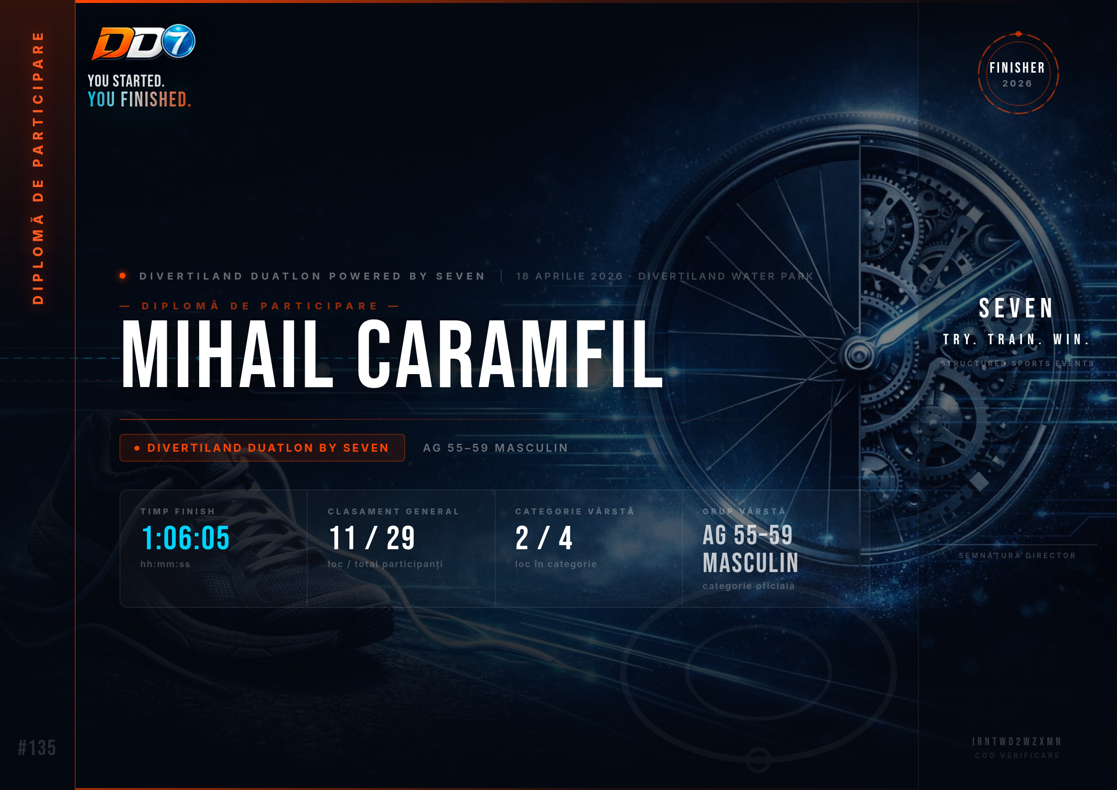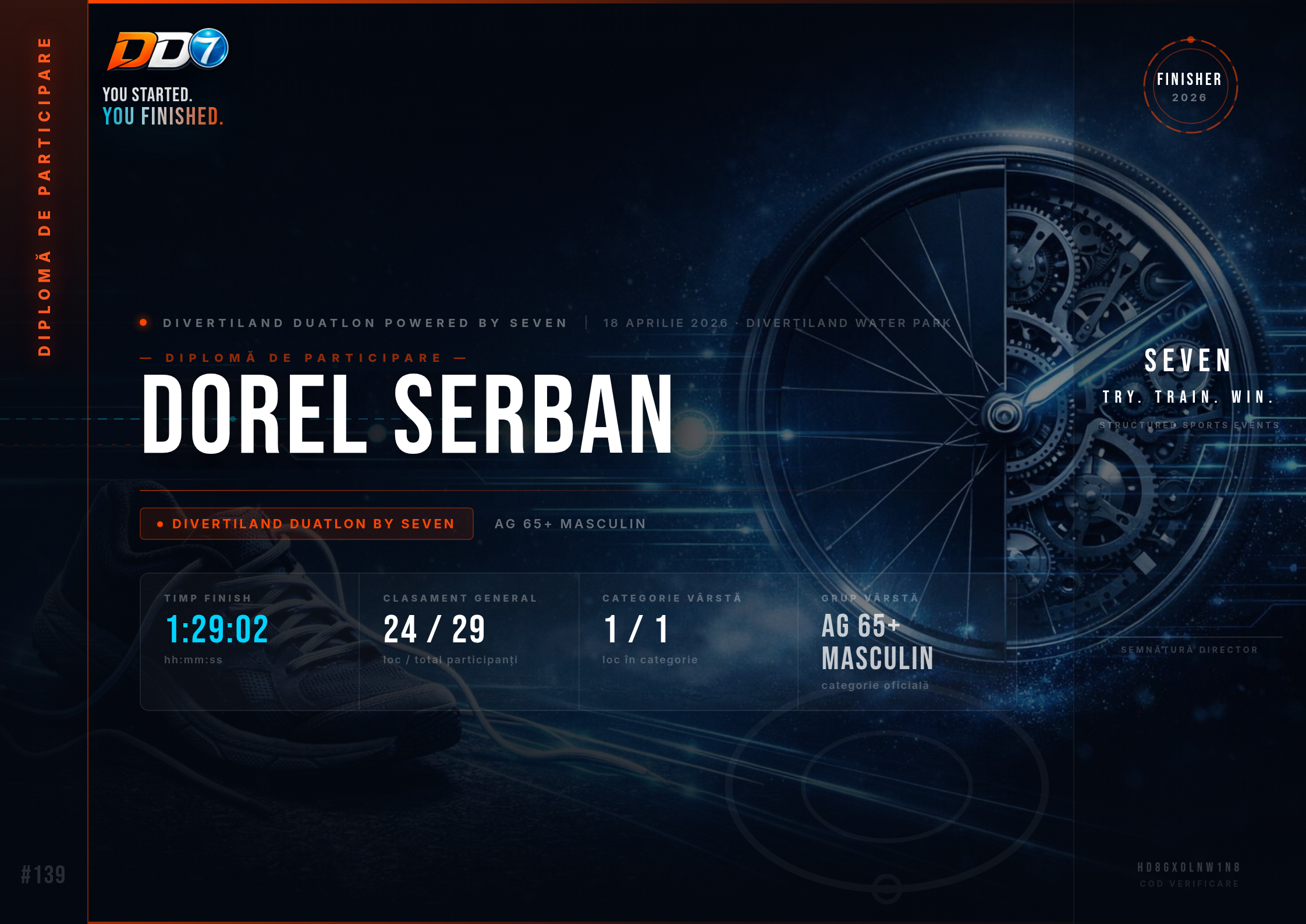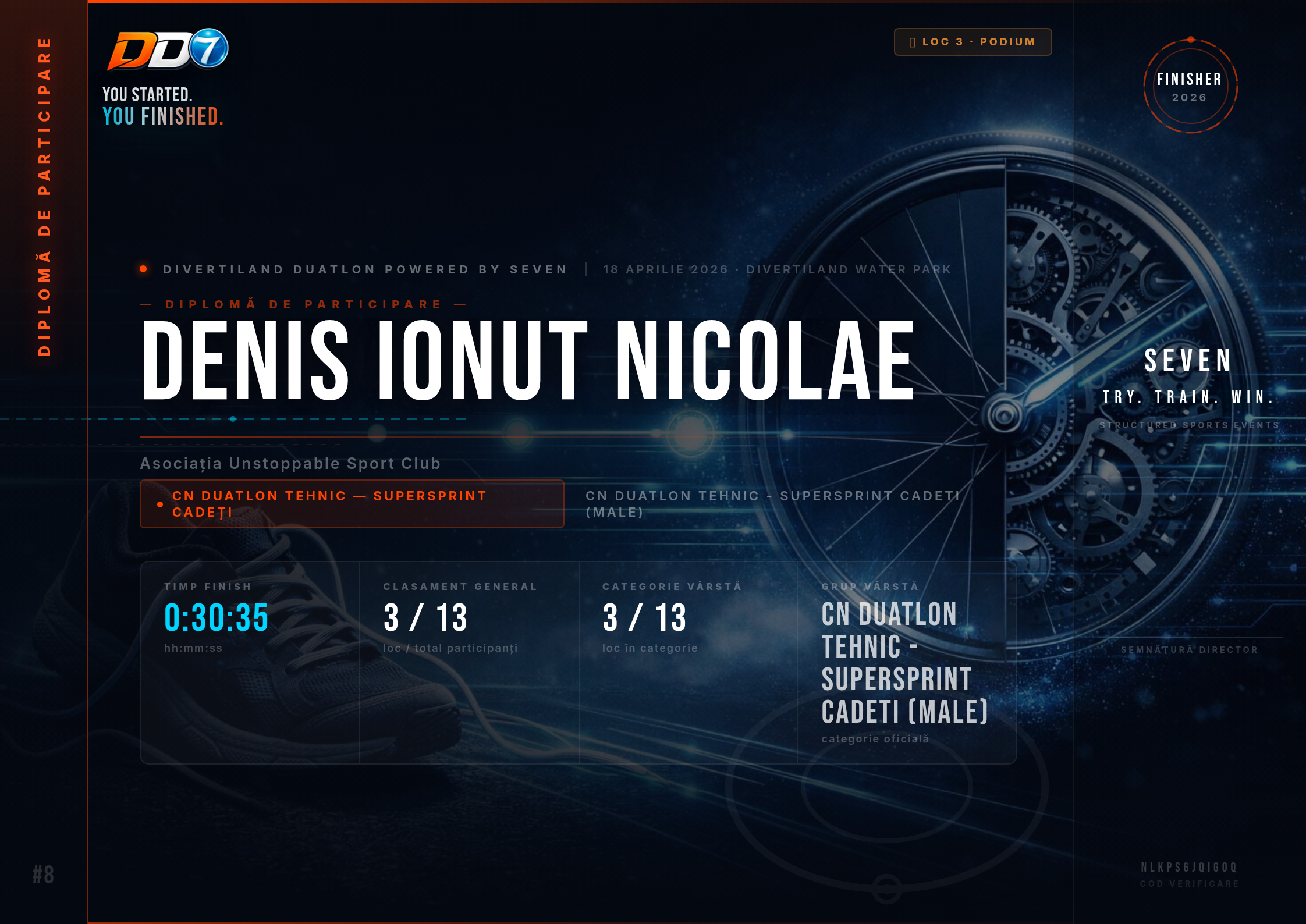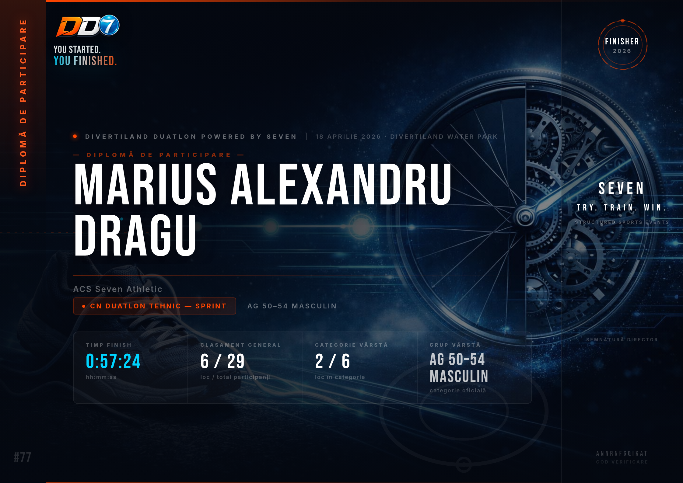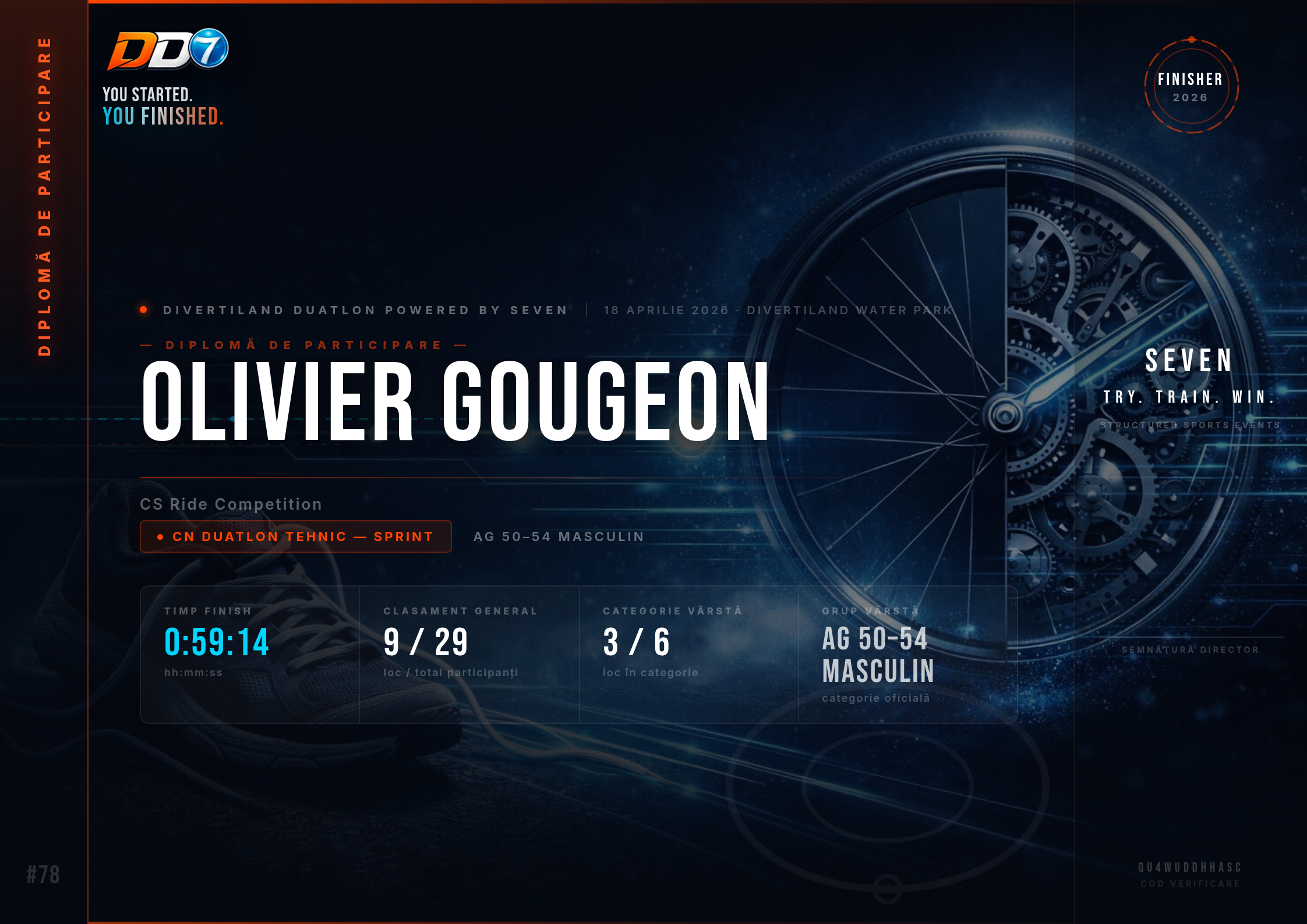 | 14 | Victor AdriaN Diaconescu | TRIKids 6-8 Ani | M | 162 | 0:01:07 | 0:00:59 | 0:05:36 | 0:01:38 | 0:09:19 | 📜 |