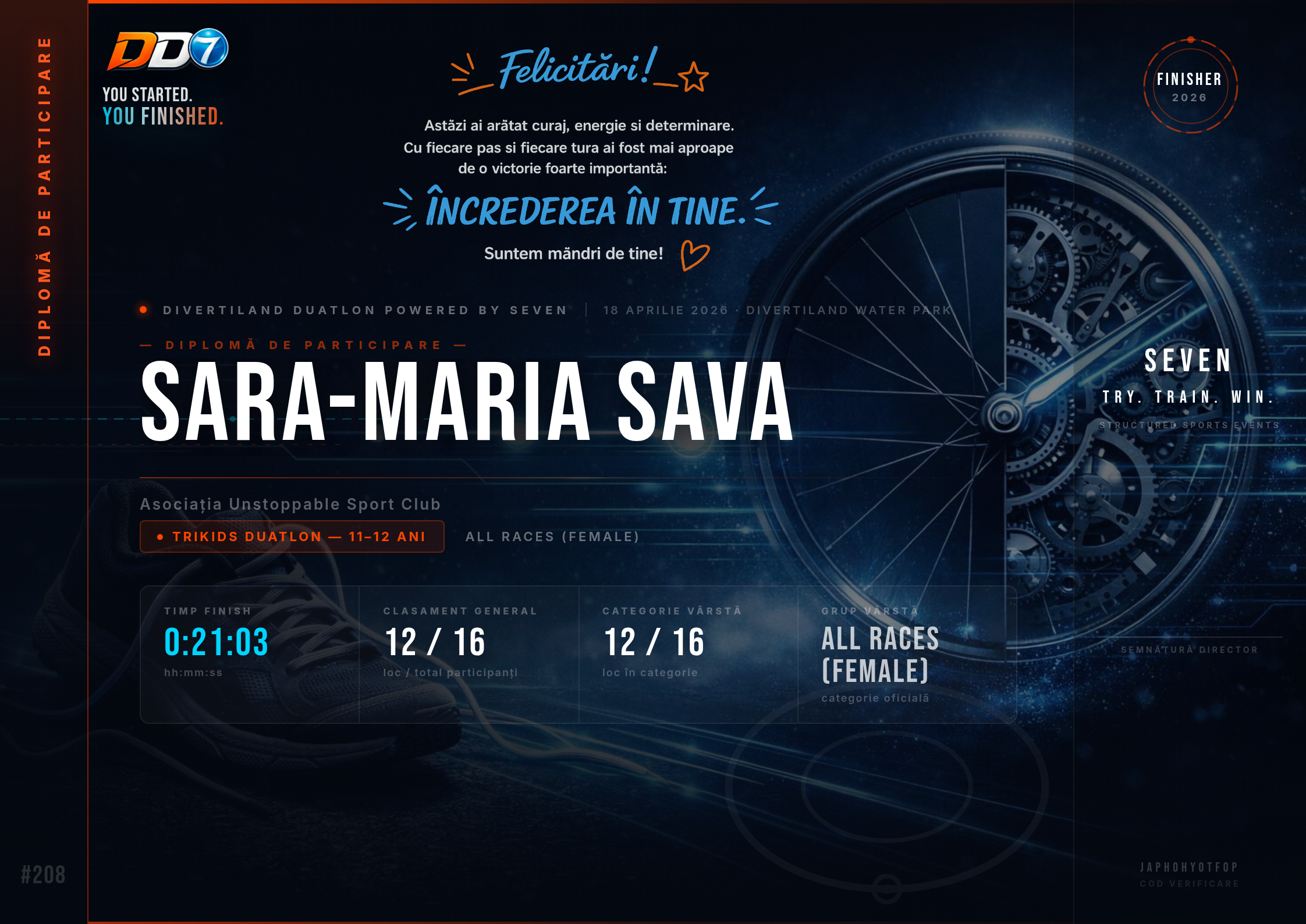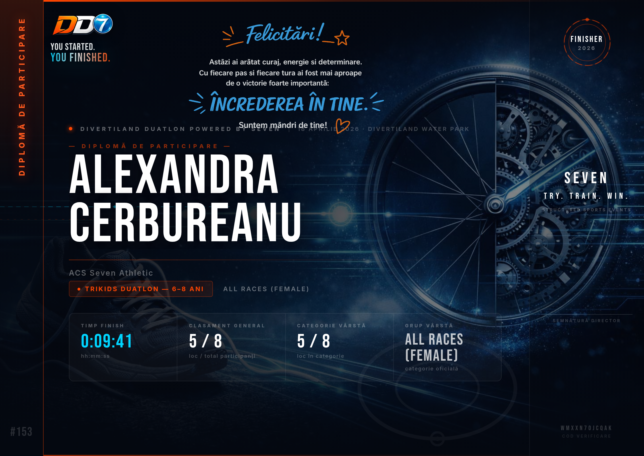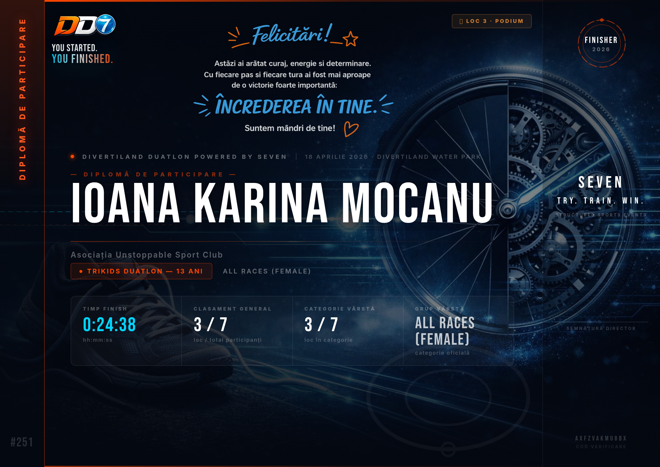 | 7 | Alma Mircea | TRIKids 6-8 Ani | F | 151 | 0:01:25 | 0:01:06 | 0:06:15 | 0:01:57 | 0:10:41 | 📜 |