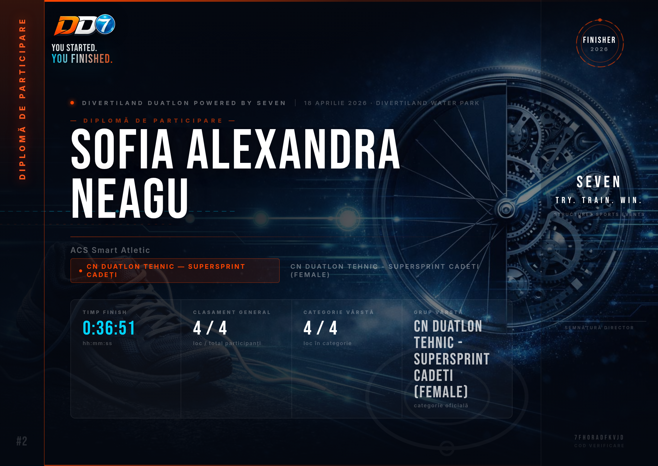 | DNS | 45 | Raluca Maria Rotaru | Junior II Feminin | CN Duatlon Tehnic - Sprint | F |