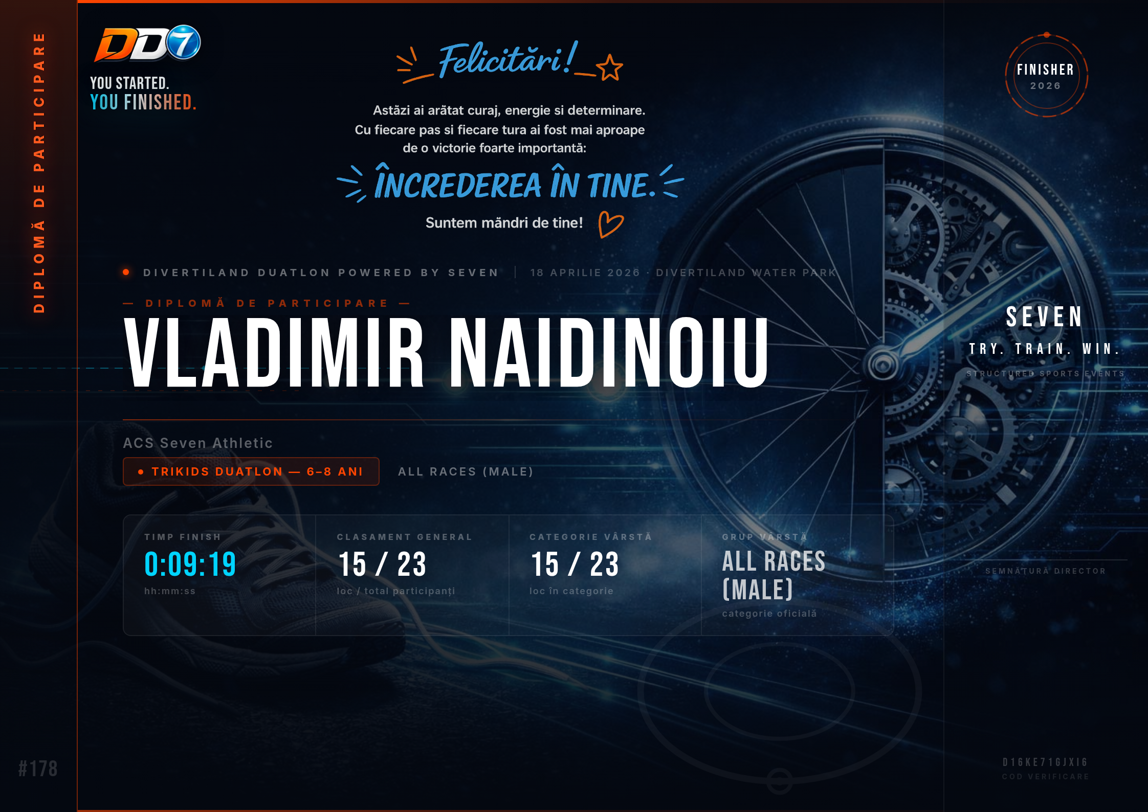 | 15 | Vladimir Naidinoiu | TRIKids 6-8 Ani | M | 178 | 0:01:12 | 0:01:12 | 0:05:27 | 0:01:30 | 0:09:19 | 📜 |