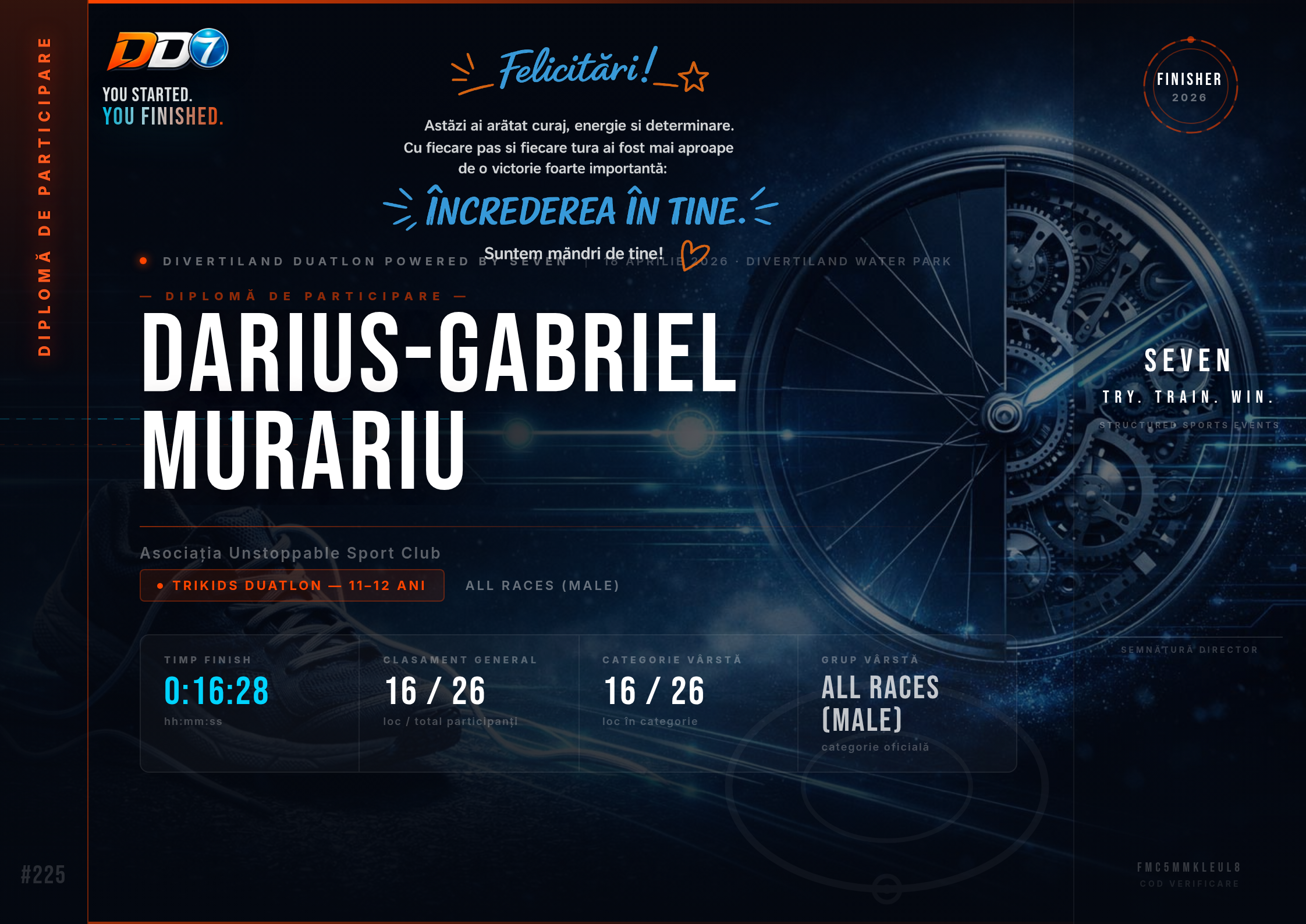 | 16 | DARIUS-GABRIEL Murariu | M | 225 | 0:02:02 | 0:00:46 | 0:10:44 | 0:02:57 | 0:16:28 | 📜 | |