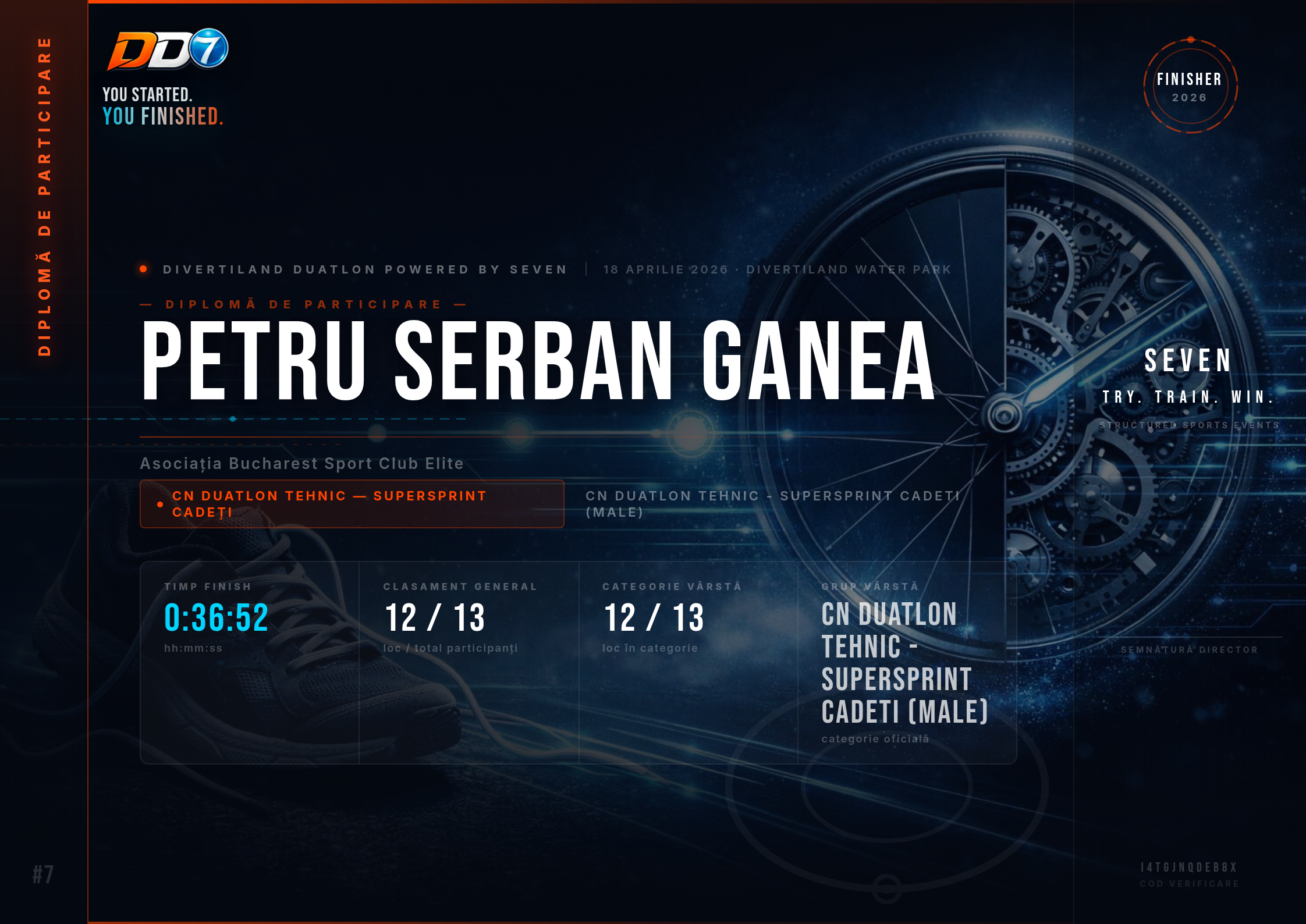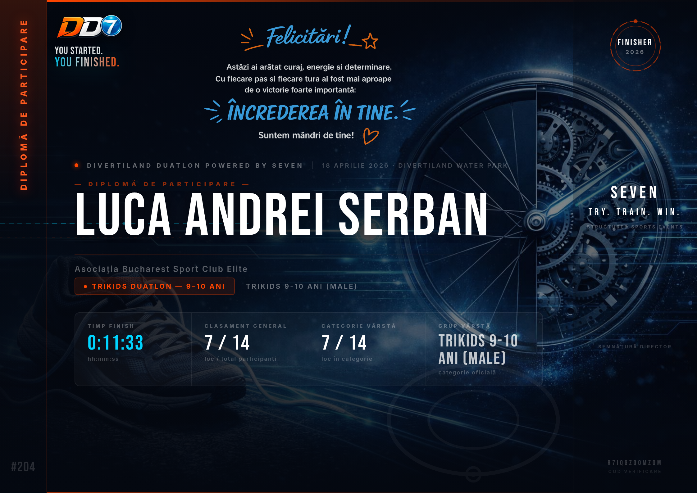 | 7 | Luca Andrei Serban | M | TRIKids 9-10 Ani | 204 | 0:01:37 | 0:00:42 | 0:07:18 | 0:01:57 | 0:11:33 | 📜 |