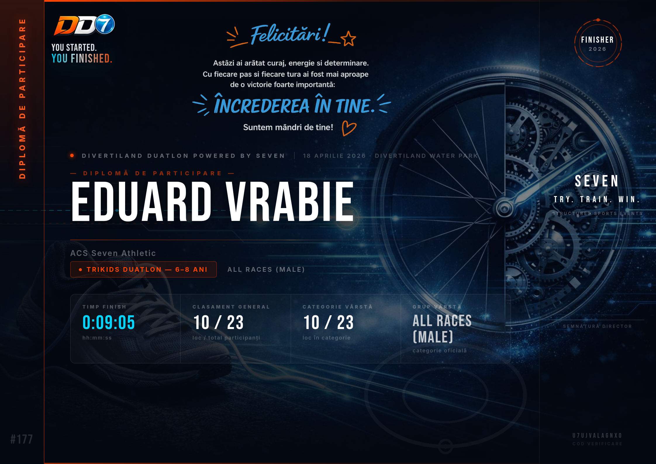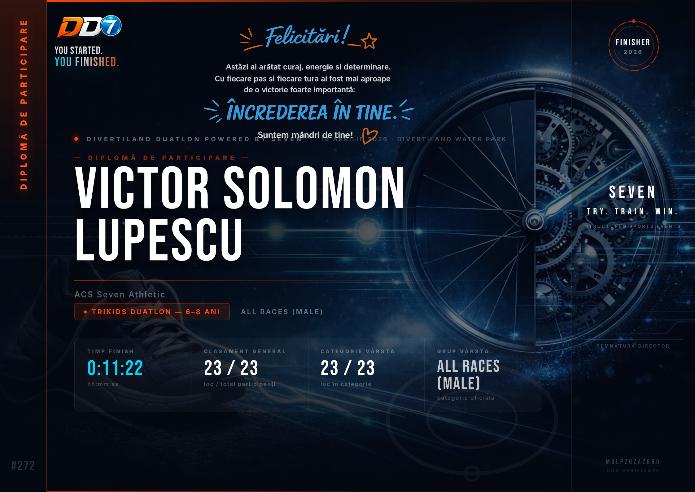 | 23 | Victor Solomon Lupescu | TRIKids 6-8 Ani | M | 272 | 0:01:29 | 0:01:19 | 0:06:34 | 0:02:02 | 0:11:22 | 📜 |