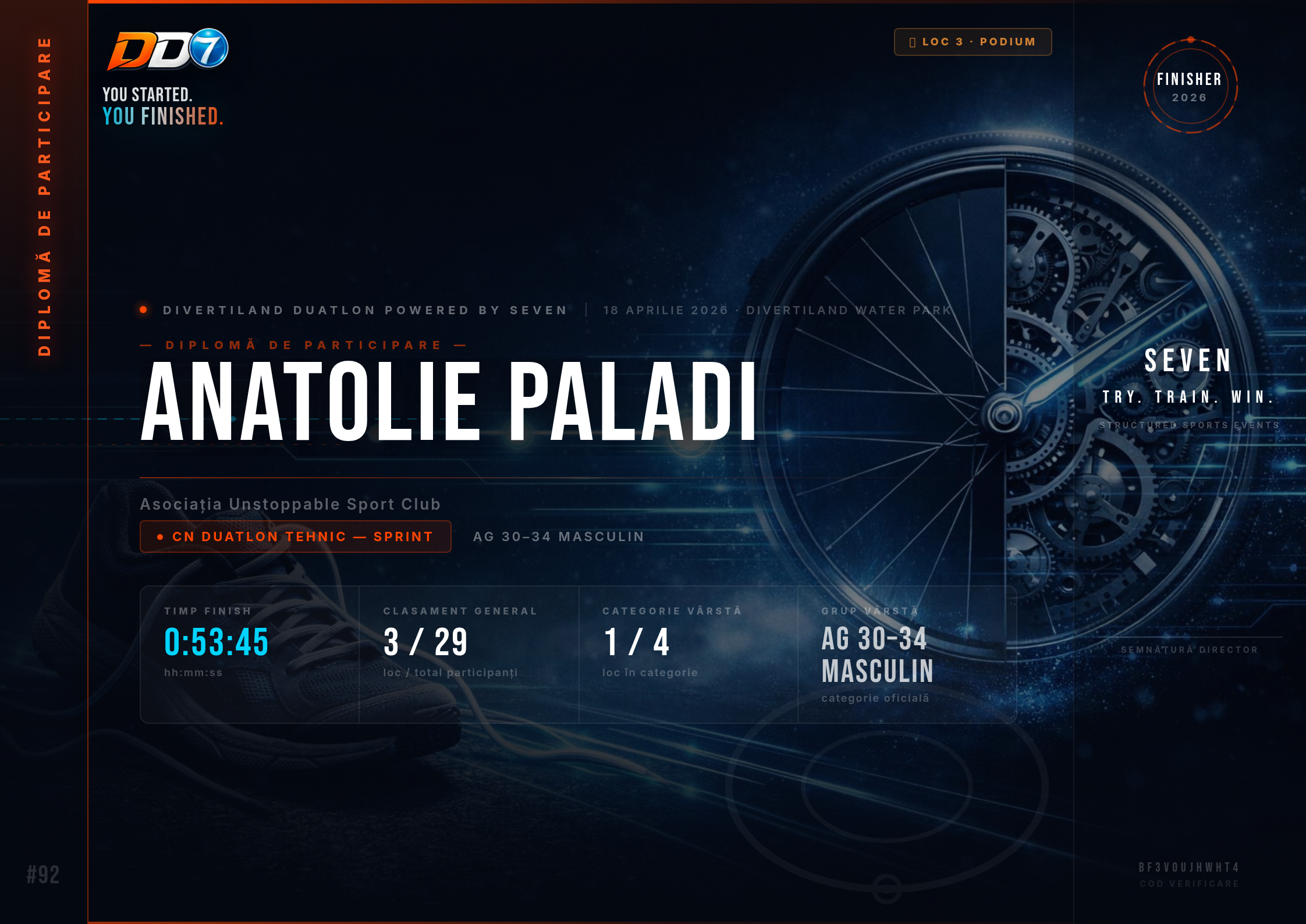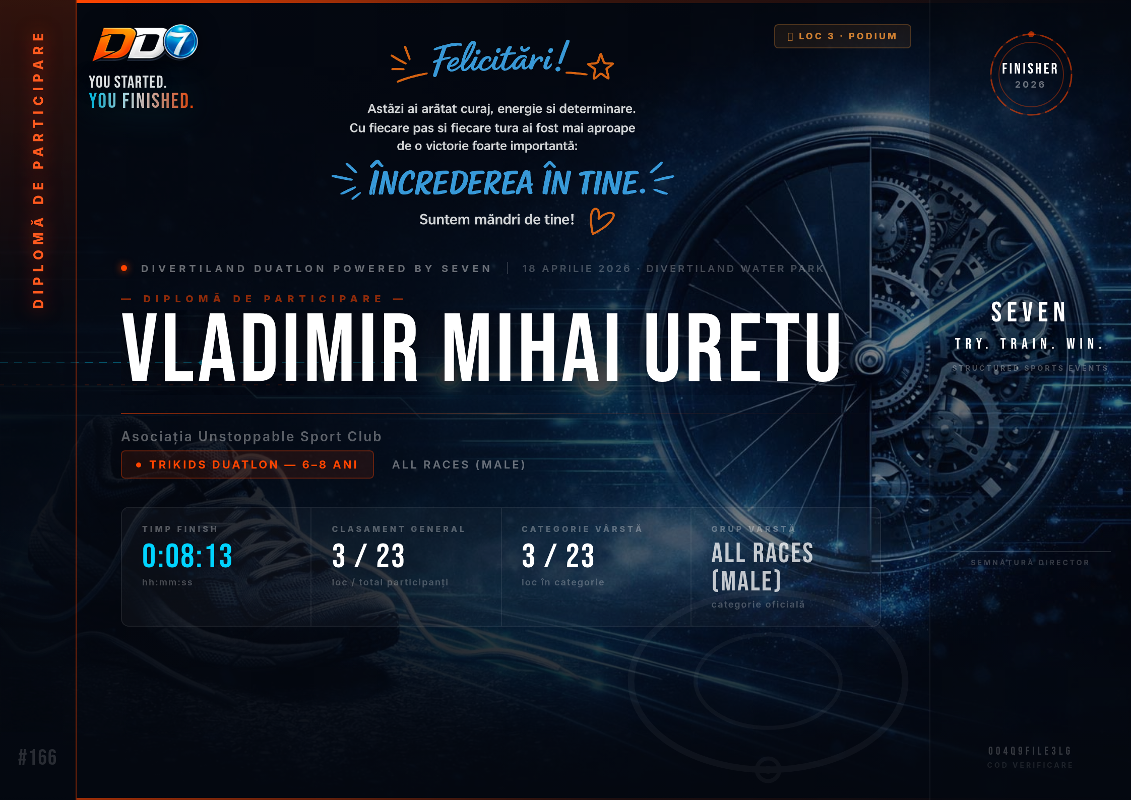 | 3 | Vladimir Mihai Uretu | TRIKids 6-8 Ani | M | 166 | 0:01:10 | 0:00:52 | 0:04:45 | 0:01:27 | 0:08:13 | 📜 |