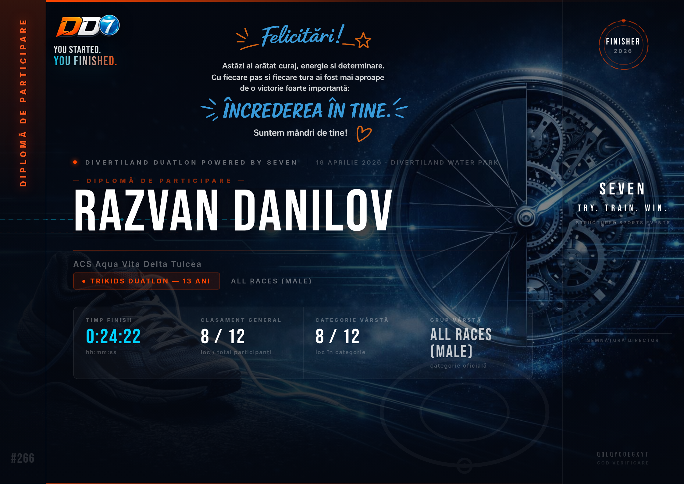| 8 | Răzvan Danilov | TRIKids 13 Ani | M | 266 | 0:05:04 | 0:00:40 | 0:14:43 | 0:03:56 | 0:24:22 | 📜 |