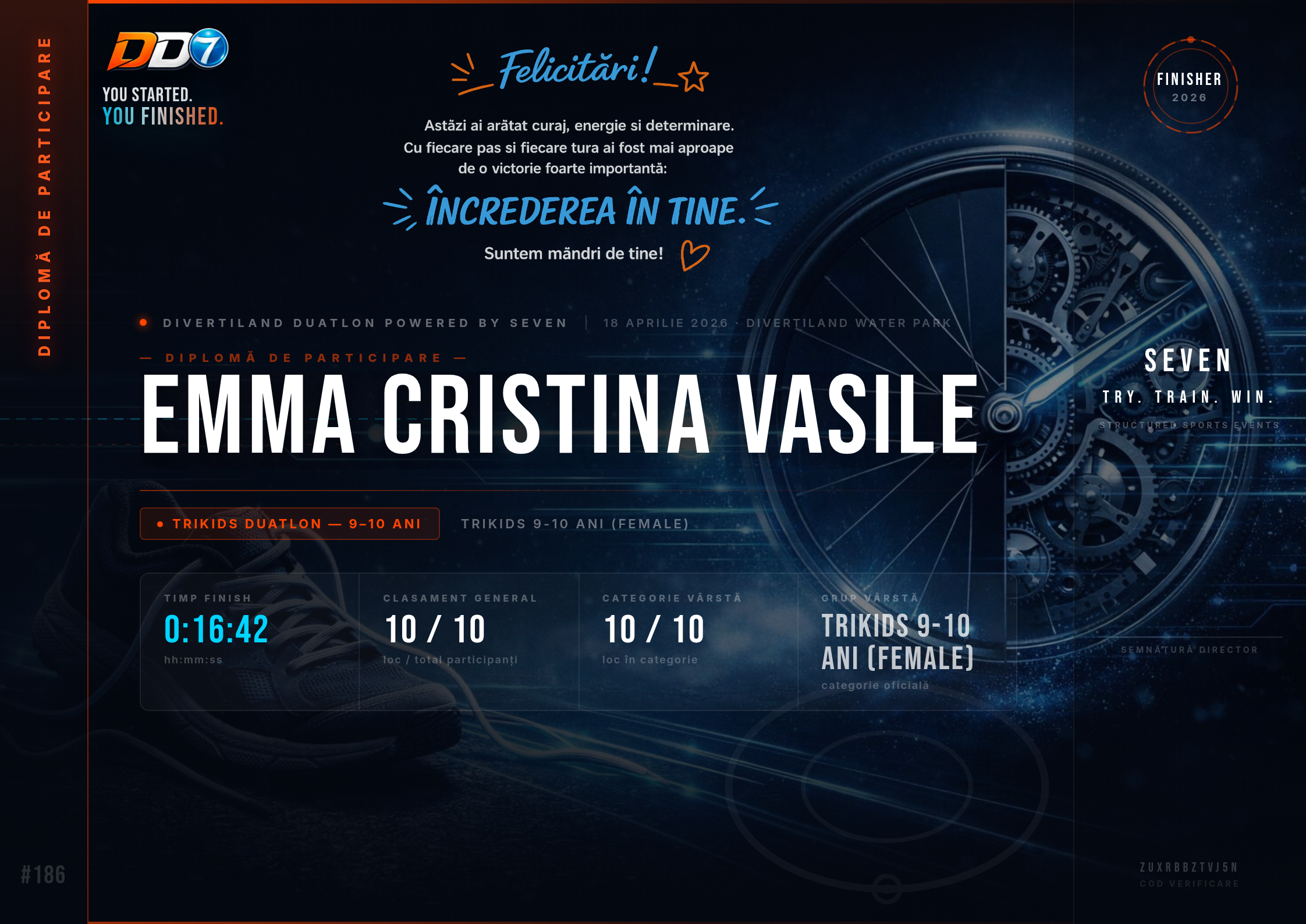 | 10 | Emma Cristina Vasile | F | TRIKids 9-10 Ani | 186 | 0:02:21 | 0:01:12 | 0:10:04 | 0:03:07 | 0:16:42 | 📜 |