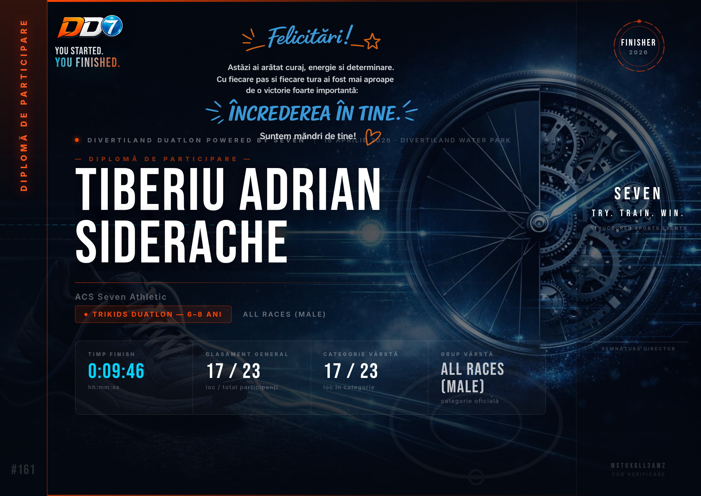 | 17 | Tiberiu Adrian Siderache | TRIKids 6-8 Ani | M | 161 | 0:01:12 | 0:01:02 | 0:05:54 | 0:01:39 | 0:09:46 | 📜 |