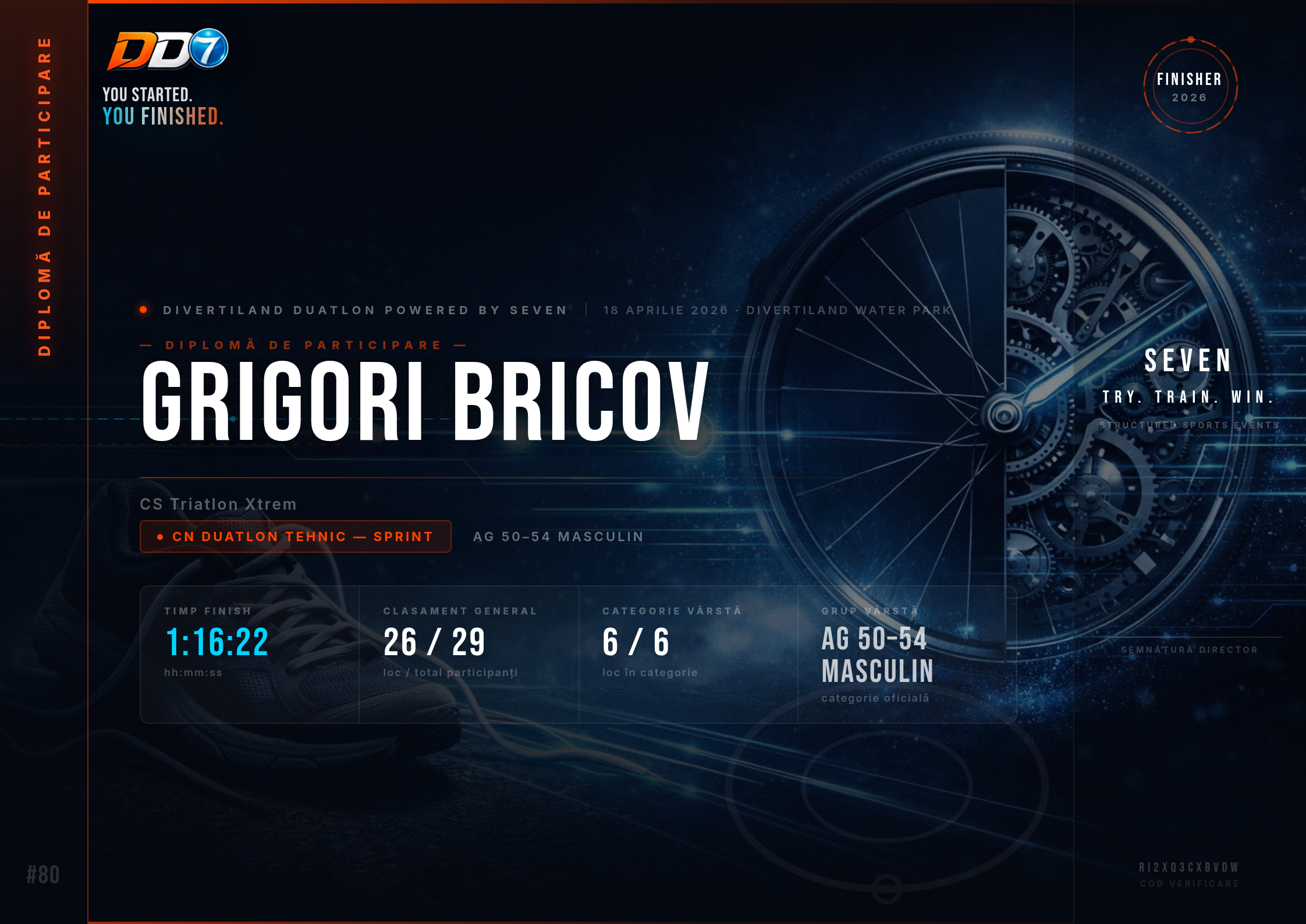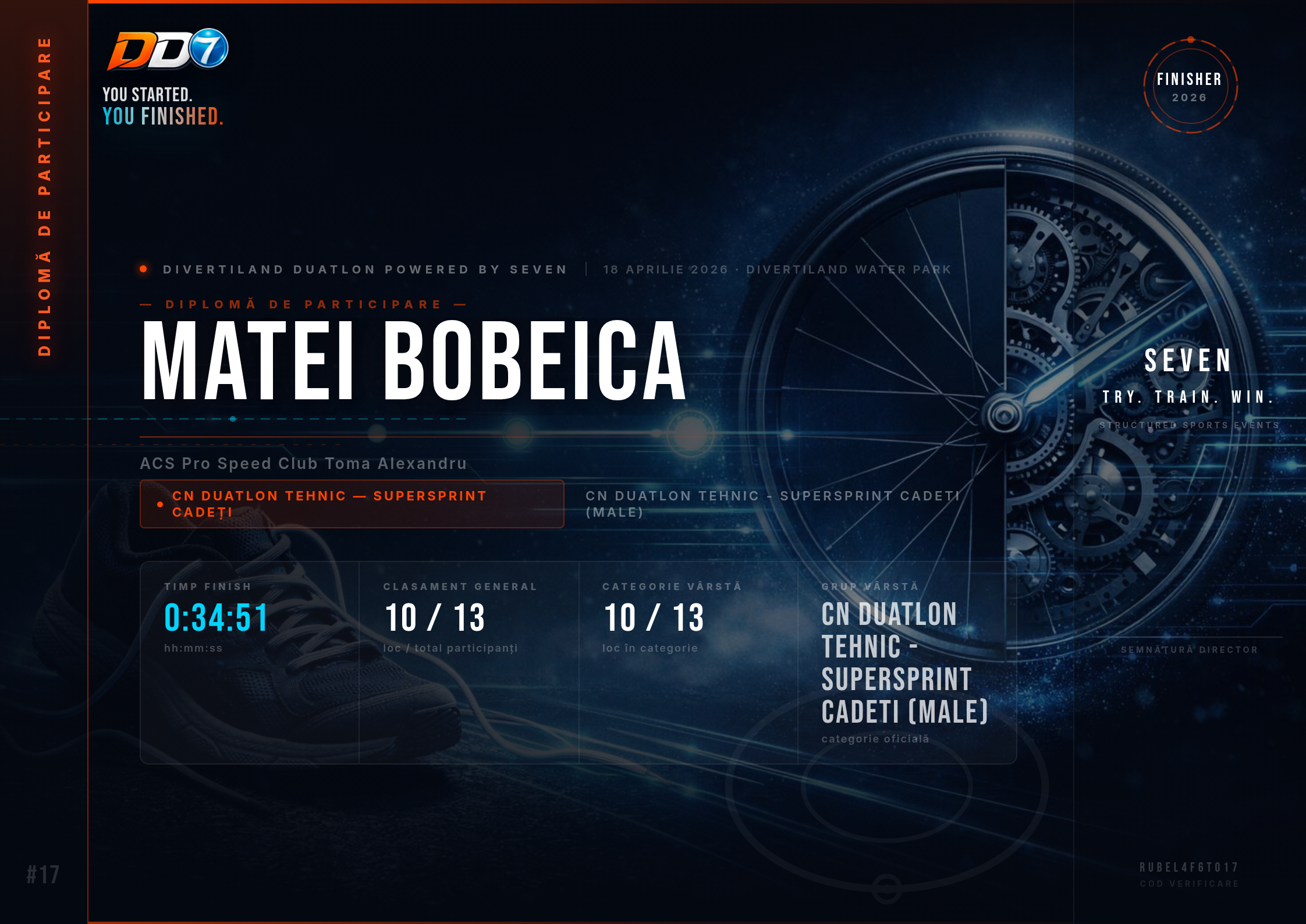 | 11 | Alexandru Bobeica | TRIKids 6-8 Ani | M | 175 | 0:01:16 | 0:00:58 | 0:05:21 | 0:01:33 | 0:09:07 | 📜 |