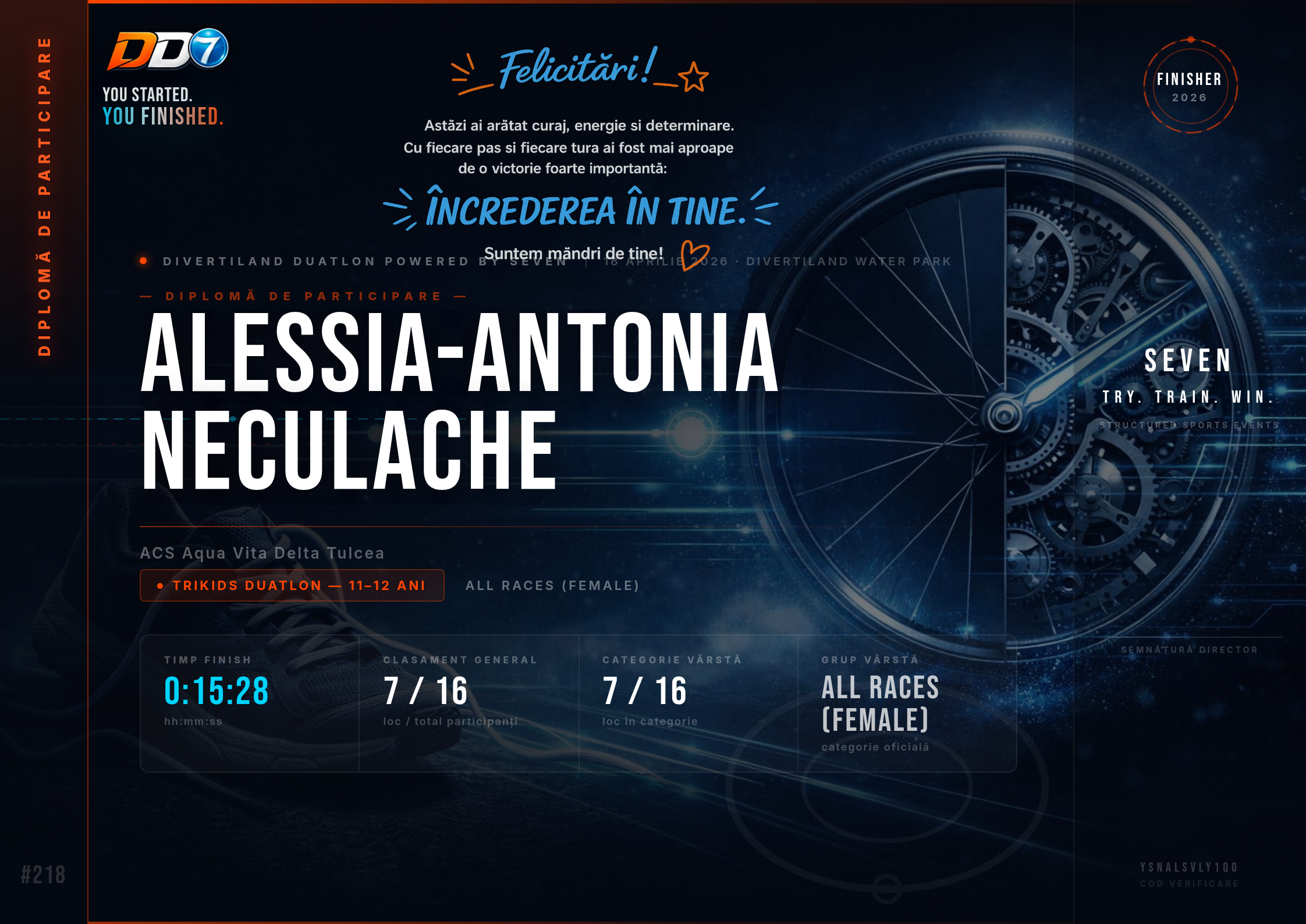 | 7 | Lavinia Maria Cujba | F | TRIKids 9-10 Ani | 190 | 0:01:48 | 0:00:53 | 0:09:40 | 0:02:03 | 0:14:22 | 📜 |